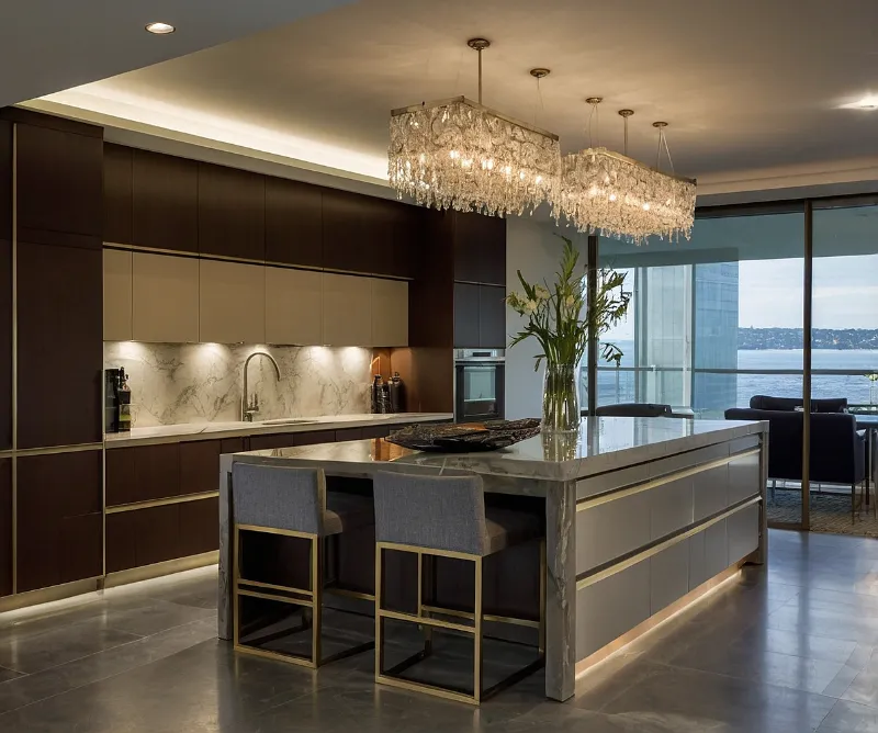 این نوع طراحی برای آشپزخانههای باز و مدرن ایدهآل است و میتواند با افزودن جزئیات متناسب با سبک خانه، نقطه کانونی دکوراسیون شود.