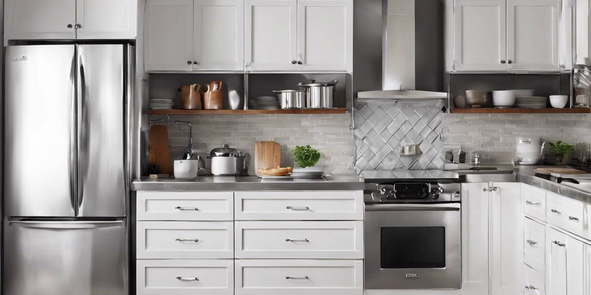 - لوازم برقی استیل ضد زنگ: لوازم برقی مانند یخچال، اجاق گاز، ماشین ظرفشویی و مایکروویو با پوشش استیل ضد زنگ، بهترین انتخاب برای هماهنگی با کابینتهای سفید نقره ای هستند. استیل ضد زنگ به دلیل ظاهر مدرن و درخشندگی خود، به تکمیل زیبایی کابینتهای نقره ای کمک میکند و ظاهری هماهنگ و یکدست ایجاد میکند.